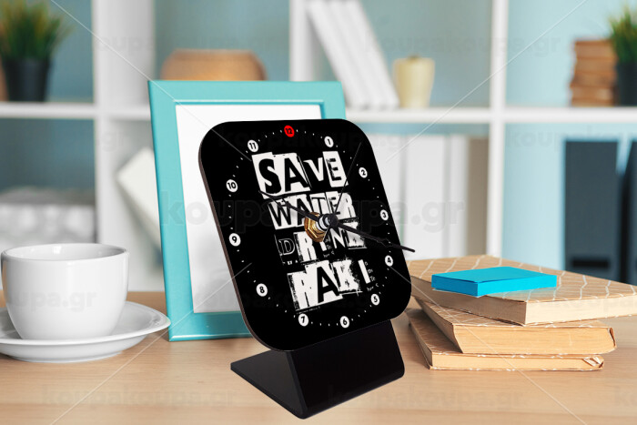 Save Water, Drink RAKI, Quartz Wooden table clock with hands (10cm)