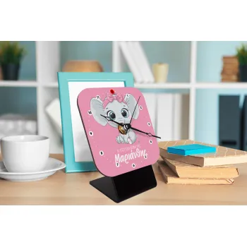 Η νονά μου, ελεφαντάκι ροζ, Quartz Wooden table clock with hands (10cm)