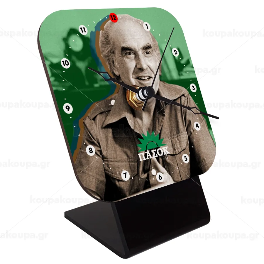 ΠΑΣΟΚ Ανδρέας Παπανδρέου, Quartz Wooden table clock with hands (10cm)