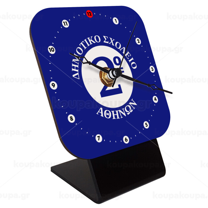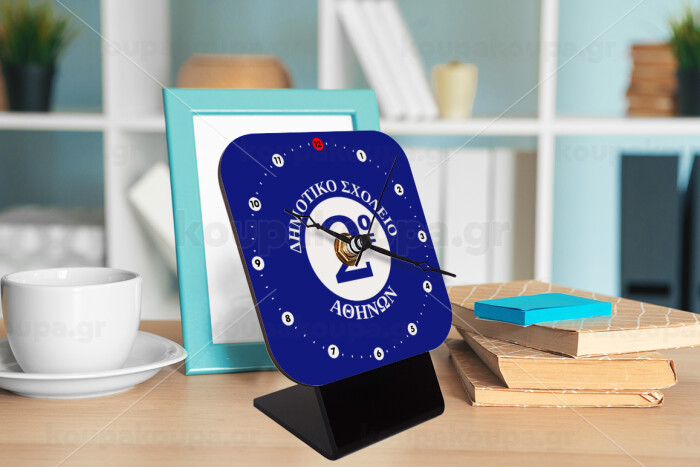Έμβλημα Σχολικό μπλε, Quartz Wooden table clock with hands (10cm)