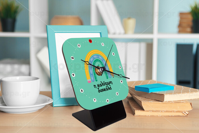 Η καλύτερη δασκάλα, Quartz Wooden table clock with hands (10cm)