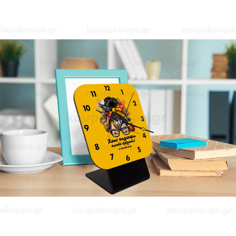 Στην καλύτερη συνοδό σχολικού!, Quartz Wooden table clock with hands (10cm)