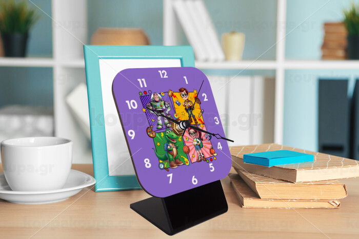 Back to the School Buzz & Friends, Quartz Wooden table clock with hands (10cm)