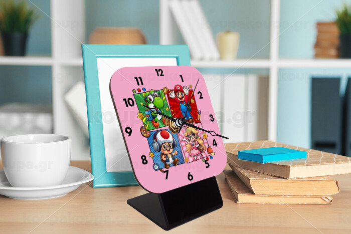 Back to the School Mario & Friends, Quartz Wooden table clock with hands (10cm)