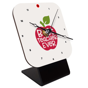 best teacher ever, apple!, Quartz Wooden table clock with hands (10cm)