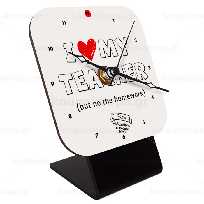 i love my teacher but no the homework outline, Quartz Wooden table clock with hands (10cm)