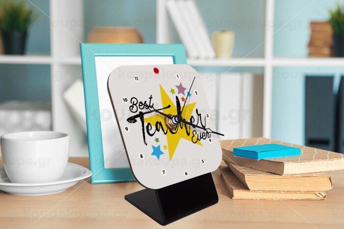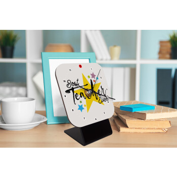 Teacher super star!!!, Quartz Wooden table clock with hands (10cm)