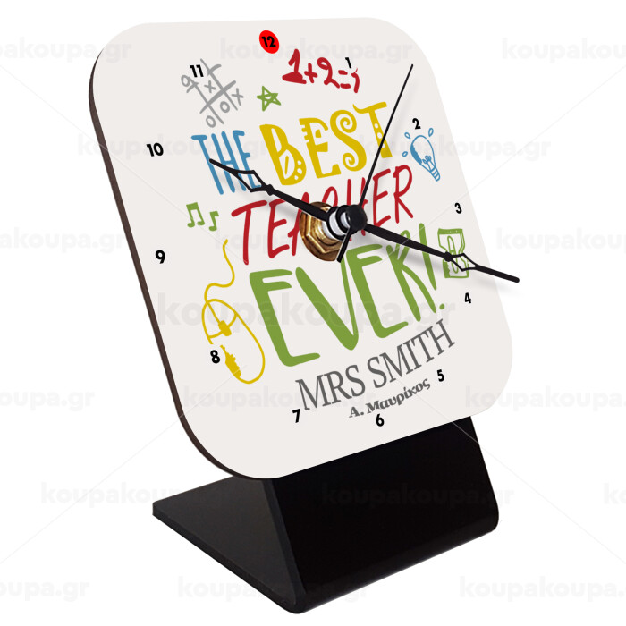 The best teacher ever!, Quartz Wooden table clock with hands (10cm)