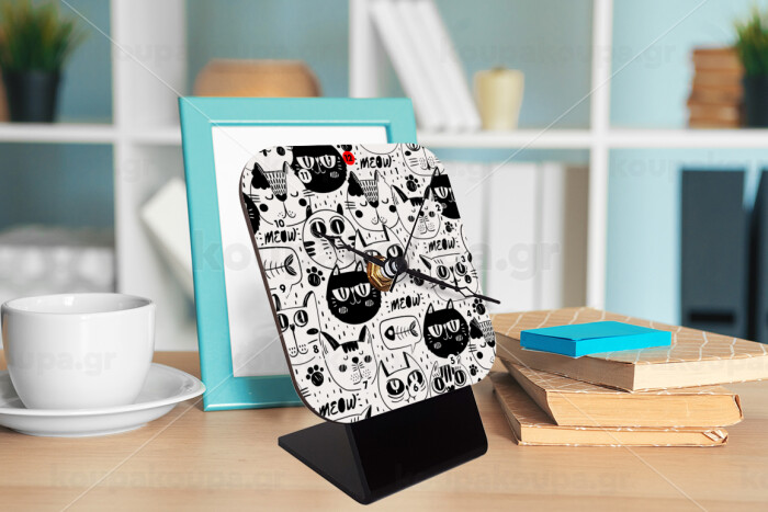 Γάτες, Quartz Wooden table clock with hands (10cm)
