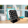 Quartz table clock made of wood. The set includes the clock and its base, the mechanism, and the installation instructions.