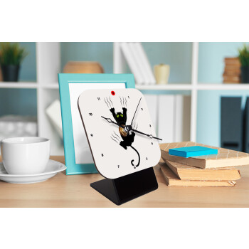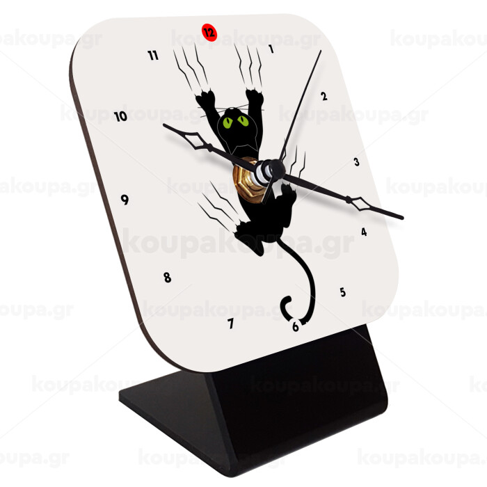cat grabbing, Quartz Wooden table clock with hands (10cm)