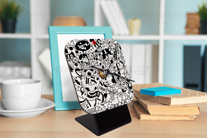 DOG pattern, Quartz Wooden table clock with hands (10cm)