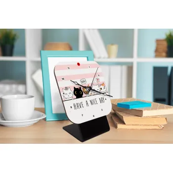 Have a nice day cats, Quartz Wooden table clock with hands (10cm)