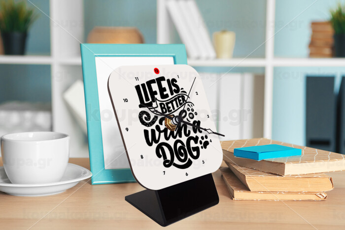 Life is better with a DOG, Quartz Wooden table clock with hands (10cm)