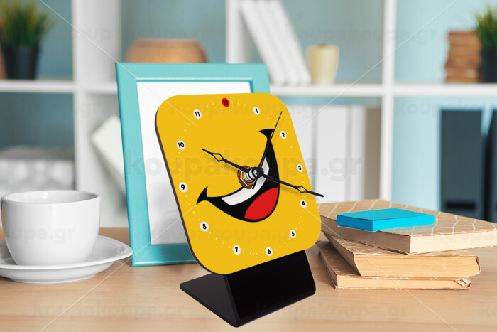 Φατσούλα γελάω!!!, Quartz Wooden table clock with hands (10cm)