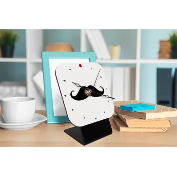 Quartz table clock made of wood. The set includes the clock and its base, the mechanism, and the installation instructions.