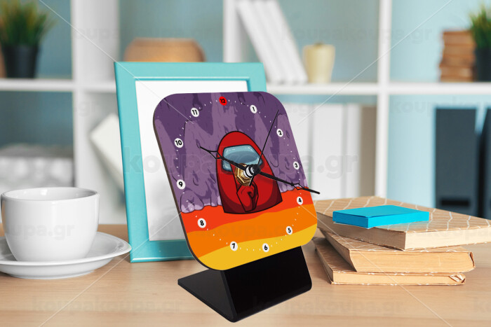 Quartz table clock made of wood. The set includes the clock and its base, the mechanism, and the installation instructions.
