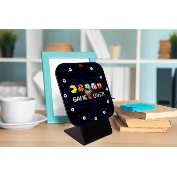 GAME OVER pac-man, Quartz Wooden table clock with hands (10cm)