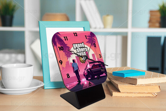 GTA (grand theft auto), Quartz Wooden table clock with hands (10cm)