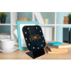 Quartz table clock made of wood. The set includes the clock and its base, the mechanism, and the installation instructions.