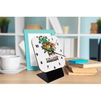 Minecraft adventure, Quartz Wooden table clock with hands (10cm)