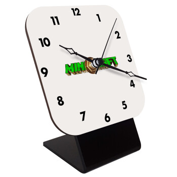 Minecraft logo green, Quartz Wooden table clock with hands (10cm)