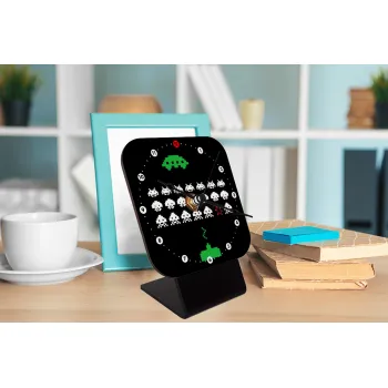 Space invaders, Quartz Wooden table clock with hands (10cm)