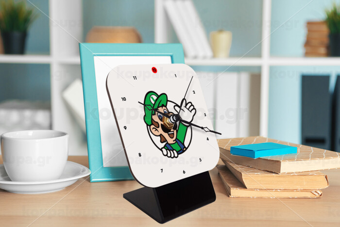 Super mario Luigi win, Quartz Wooden table clock with hands (10cm)