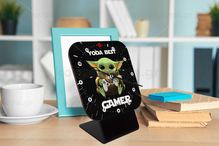 Yoda Best Gamer, Quartz Wooden table clock with hands (10cm)