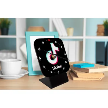 tik tok black, Quartz Wooden table clock with hands (10cm)