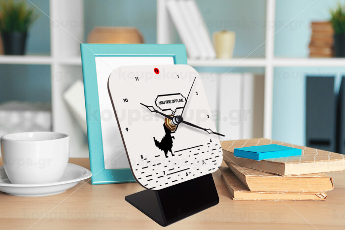 You are offline dinosaur, Quartz Wooden table clock with hands (10cm)