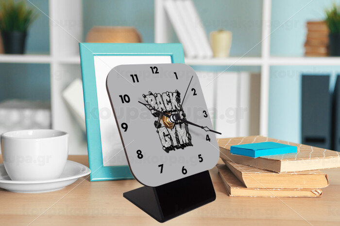 Back in the GYM, Quartz Wooden table clock with hands (10cm)