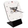 Quartz table clock made of wood. The set includes the clock and its base, the mechanism, and the installation instructions.