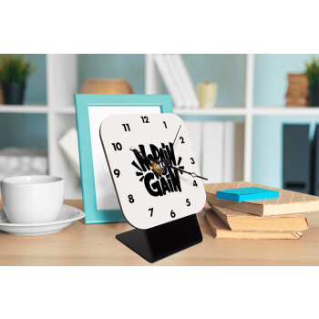 No pain no gain, Quartz Wooden table clock with hands (10cm)
