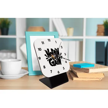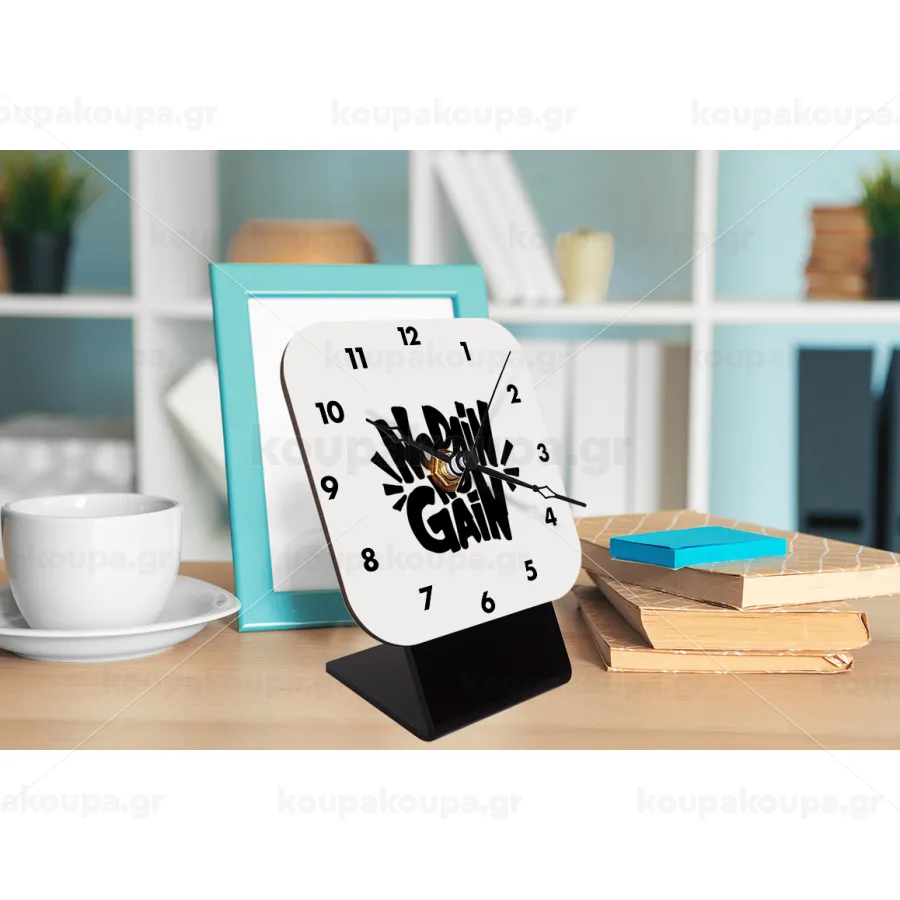 No pain no gain, Quartz Wooden table clock with hands (10cm)