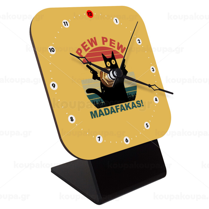PEW PEW madafakas, Quartz Wooden table clock with hands (10cm)