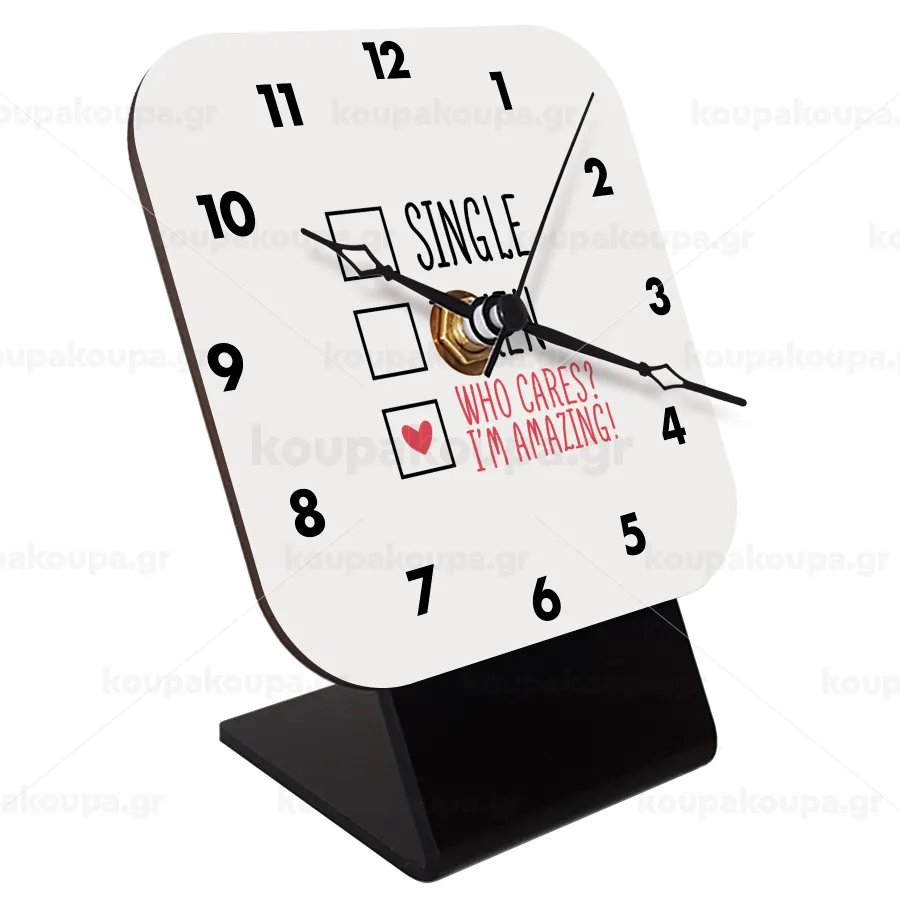 Single, Taken, Who cares i'm amazing, Quartz Wooden table clock with hands (10cm)