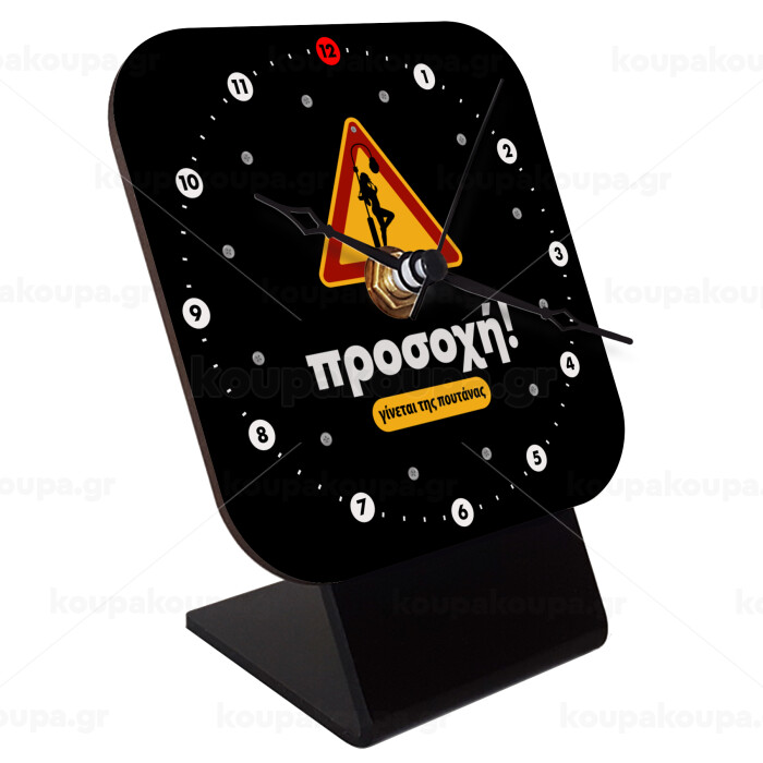 Προσοχή Γίνεται της πουτ.νας, Quartz Wooden table clock with hands (10cm)