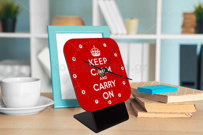 KEEP CALM  and carry on, Quartz Wooden table clock with hands (10cm)