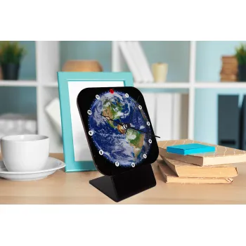 Planet Earth, Quartz Wooden table clock with hands (10cm)