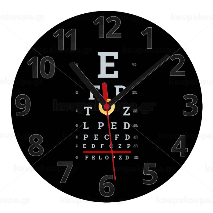 EYE test chart, Ρολόι τοίχου γυάλινο (20cm)