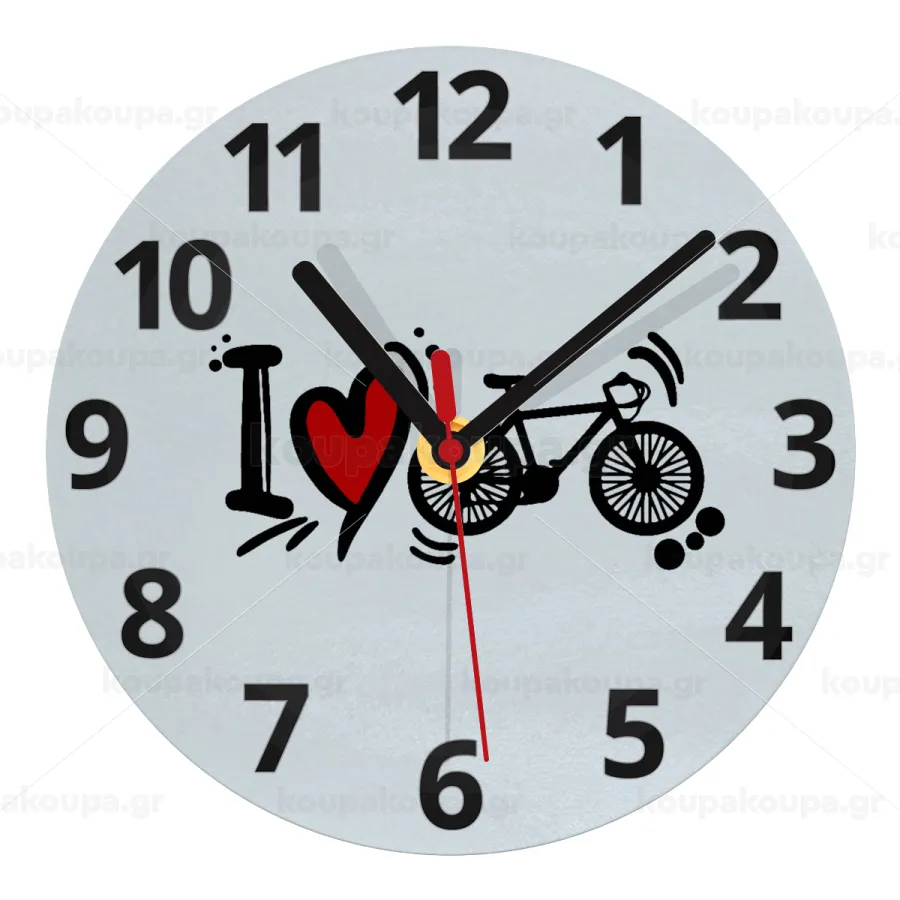 I love my bike, Ρολόι τοίχου γυάλινο (20cm)