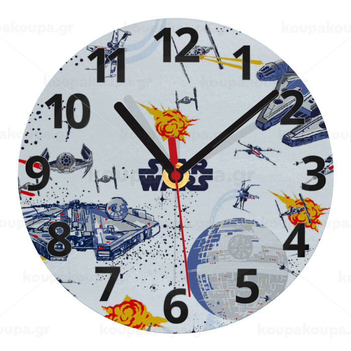Star wars drawing, Ρολόι τοίχου γυάλινο (20cm)
