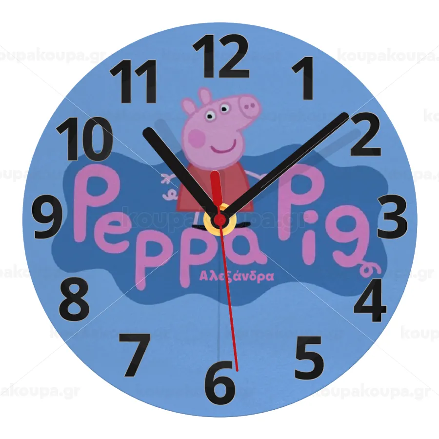Πέππα το γουρουνάκι μπλε με όνομα, Ρολόι τοίχου γυάλινο (20cm)