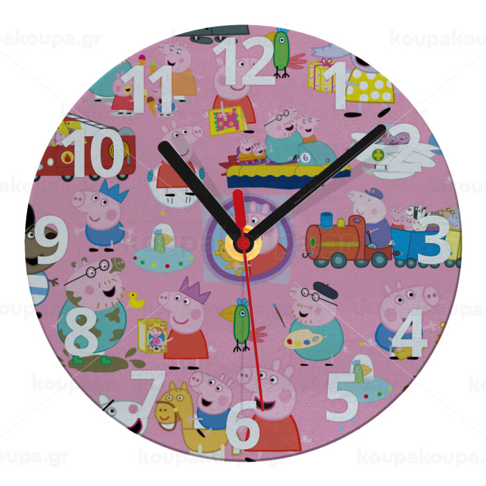 Peppa pig Characters, Ρολόι τοίχου γυάλινο (20cm)
