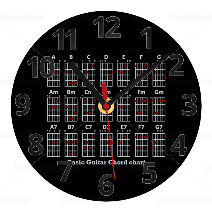 Guitar tabs, Ρολόι τοίχου γυάλινο (20cm)
