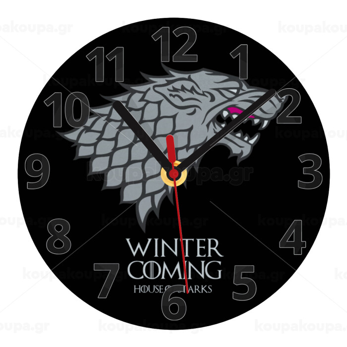 GOT House of Starks, winter coming, Ρολόι τοίχου γυάλινο (20cm)