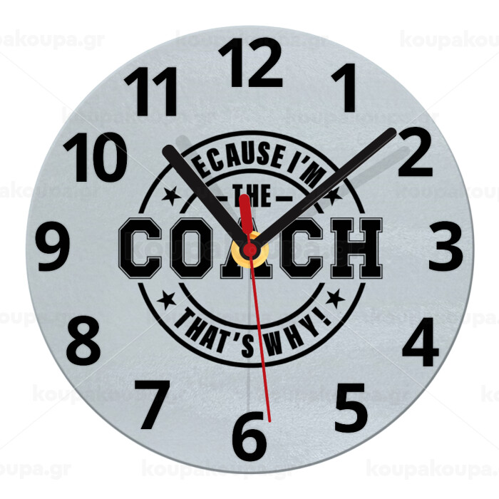 Because i'm the Coach, Ρολόι τοίχου γυάλινο (20cm)