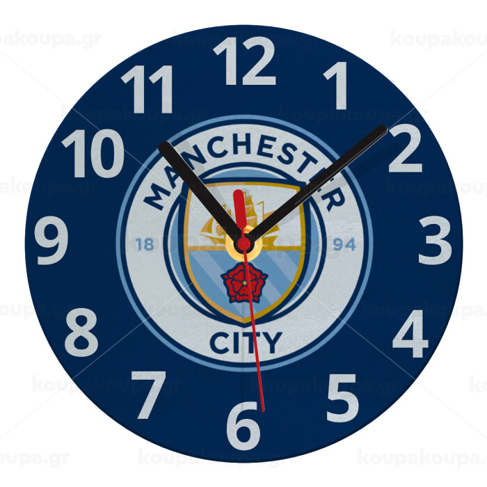 Manchester City FC , Ρολόι τοίχου γυάλινο (20cm)
