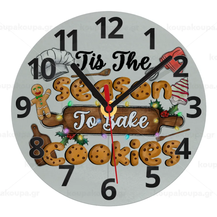 Tis The Season To Bake Cookies, Ρολόι τοίχου γυάλινο (20cm)